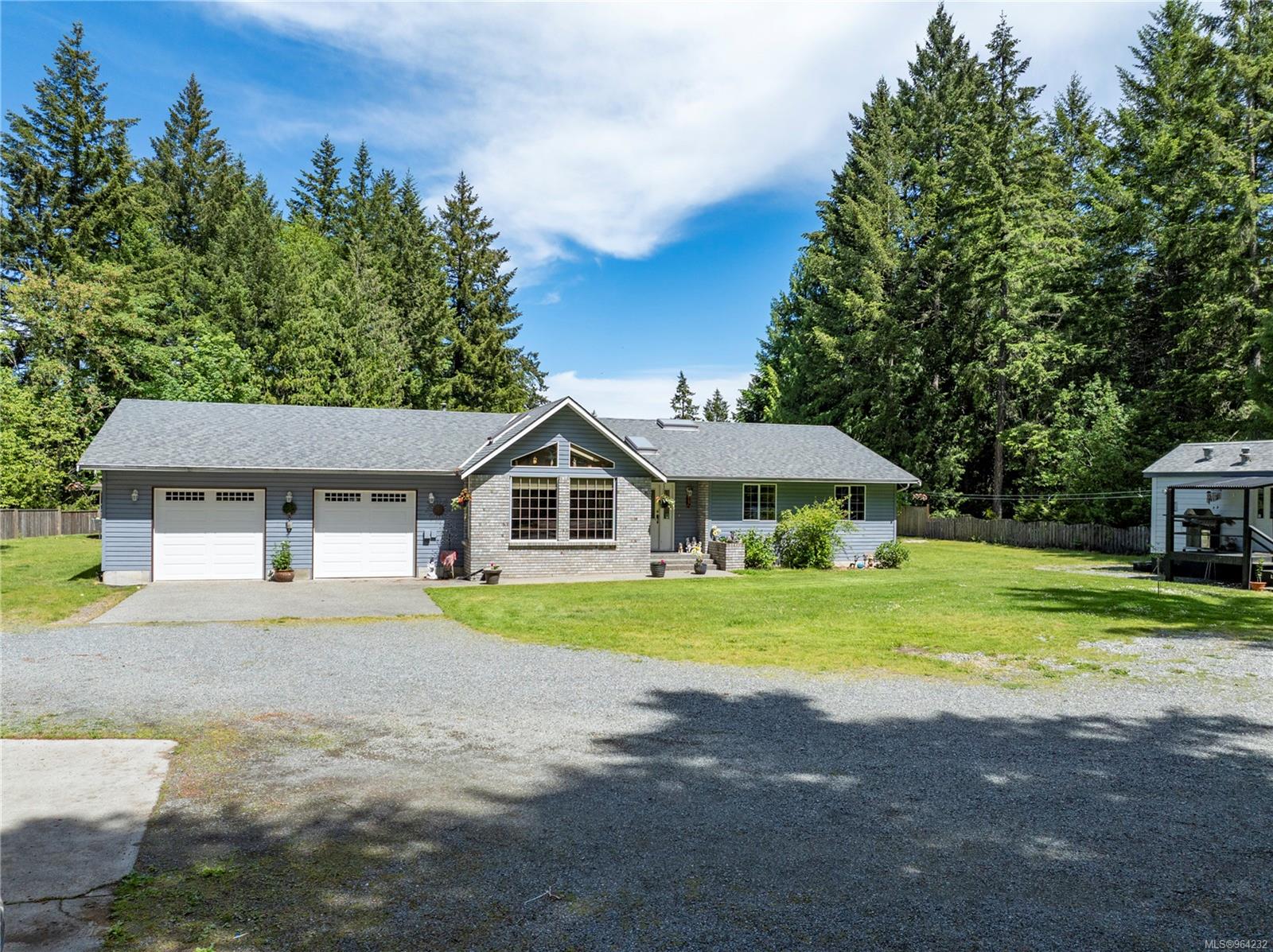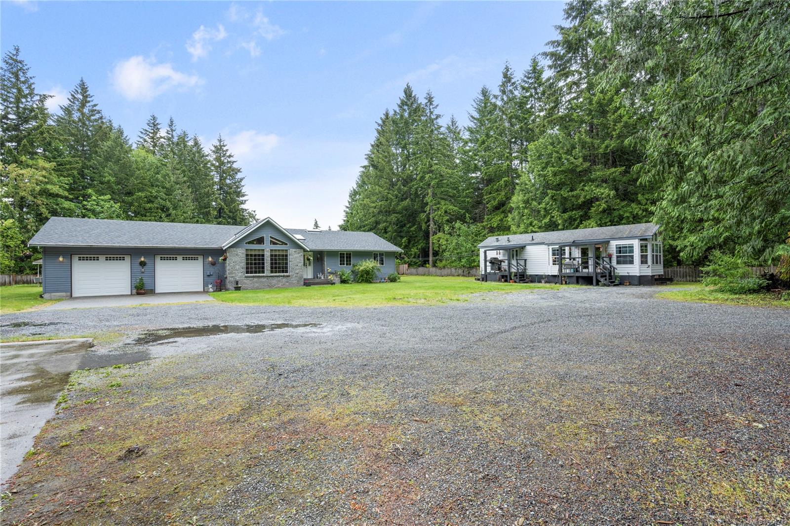 One of a kind property offering a 1551 sq.ft. 3 bedroom, 2 bathroom custom rancher, huge 3-Bay workshop (12 foot doors) with a studio suite, & a renovated mobile with great tenants in both units. Located on 0.96. acres of flat, sunny, usable land with a secure entrance gate. Inside is spacious with a vaulted, open concept eat-in kitchen/living with eating bar, oak cabinets & large island. Down the hall is the laundry room, decent sized primary bedroom with sliders to the back yard, a 5-PC soaker tub ensuite & a walk-in closet. 2 more bedrooms & a 4-piece bathroom are adjacent. Enjoy the comfort of forced air with a heat pump, & electric furnace back up & rolling home into your massive 2 car garage! More highlights of this amazing property: Covered concrete back patio, gazebo area with benches, tons of lawn for pets and kids to run and play, raised garden beds, chicken-coop, green house, & an outdoor mechanic's pit area to. Shop is 1585 sq.ft. with a metal roof, studio suite and a full kitchen, 4-piece bathroom, separate laundry, propane & wood heat. Mobile is renovated with 1 bedroom, 1 bathroom, gas stove, newer appliances, 2 decks, own laundry & hydro meter. Rural living yet close to YCD, minutes to BC Ferries & 10 minutes to downtown Nanaimo. Close to schools & on a bus route. Tenants in studio and mobile are month to month and would like to stay if possible. Showings requires minimum 1 full day notice, preferably 2 or more. Property size and home age provided by BC Assessment.